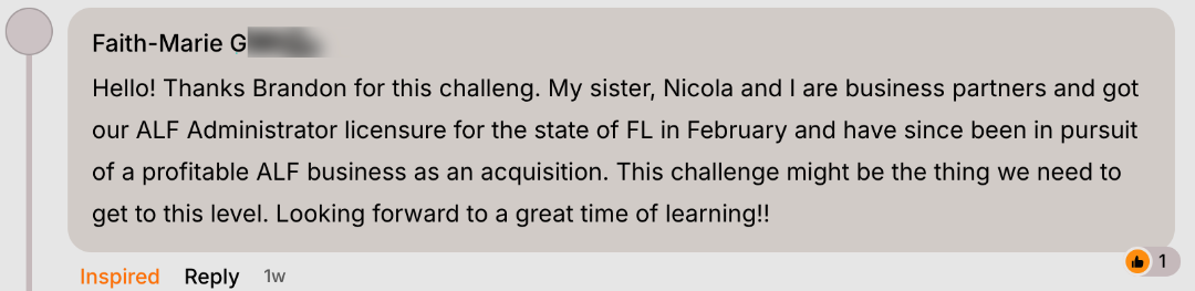 Disclaimer – This challenge will give you actionable steps to begin planning and launching your own assisted living business. Results are not guaranteed or typical. Building and operating a successful assisted living facility requires significant effort, planning, compliance with state regulations, and ongoing hard work.
